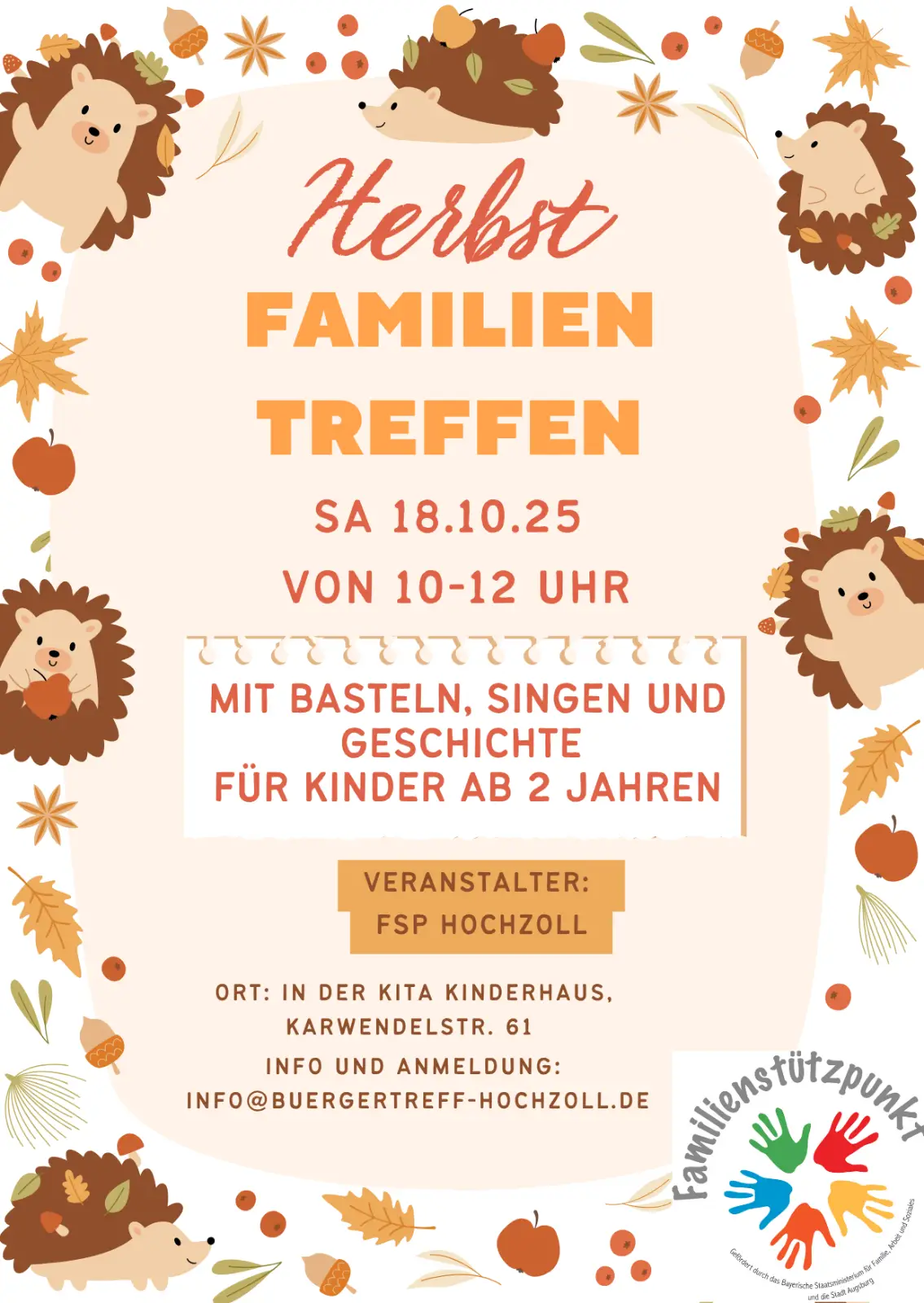 Bürgertreff Hochzoll e.V., Familienstützpunkt und Mehrgenerationentreff: ↳Stadt Augsburg Familienstützpunkt: ↳ Bayrisches Staatsministerium für Familie, Arbeit und Soziales Träger des Mehrgenerationentreffs und Familienstützpunkts Hochzoll: ↳ Evangelisches Kinder- und Jugendhilfe Zentrum Augsburg